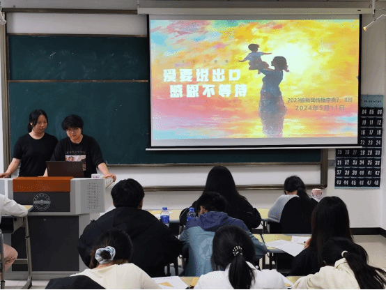 “同學們,猜一猜明天是什么節日???”“母親節!”5月11日,新聞傳播學類專業2023(7)、(8)班在K202教室開展以“愛要說出口,感恩不等待”為主題的團建活動?;顒娱_始前,活動負責人、新聞傳播學類專業2023(7)、(8)班的班長楊雨霏、朱研溪提前為每位同學準備好信紙和信封。朱研溪說:“我們希望通過寫信這種傳統而深情的溝通方式,讓同學們勇敢表達自己的心聲,將對母親的愛訴說于筆尖?!睂W生們觀看一段關于母愛的感人短片后,...